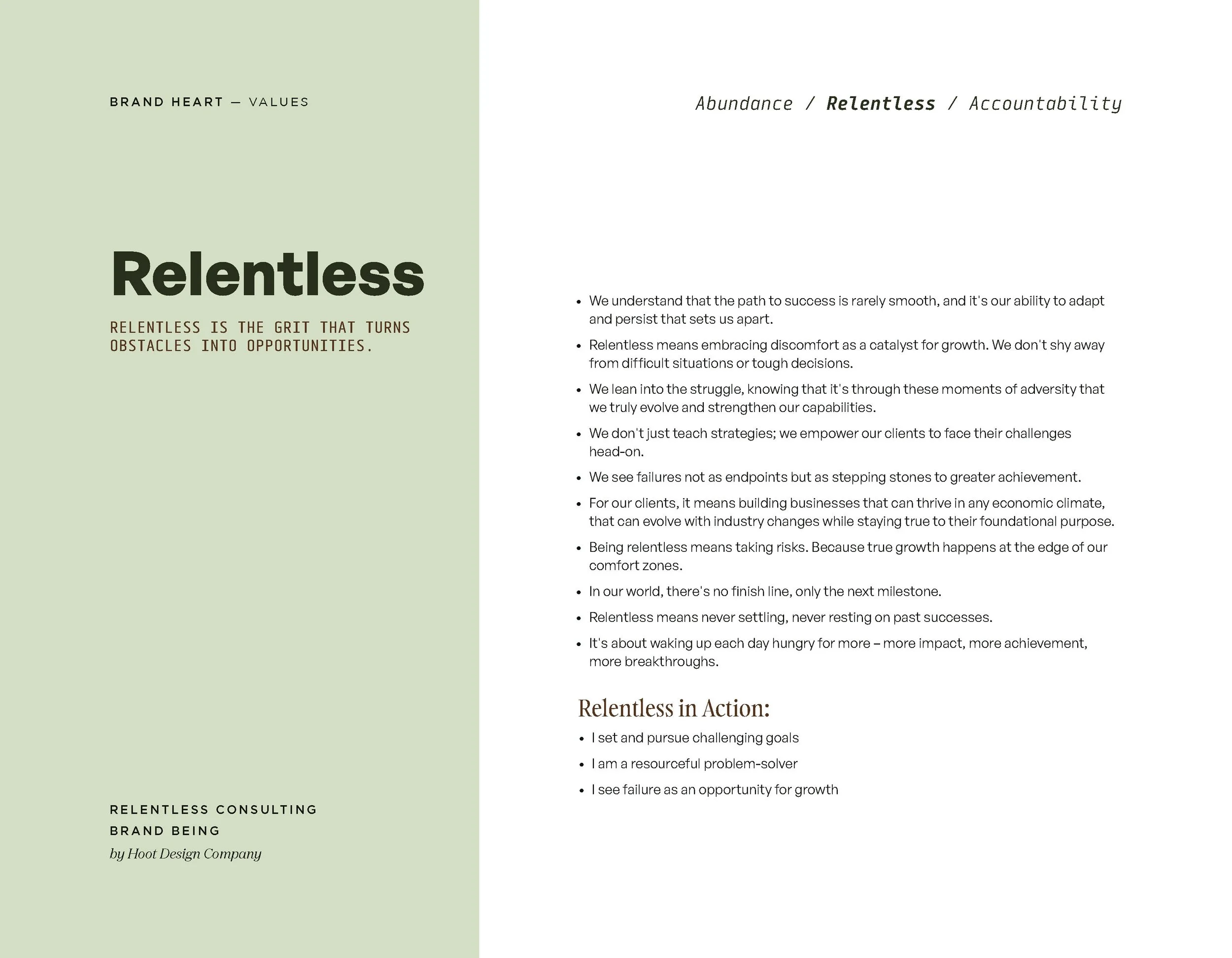 Through self-reflection, zero-bullshit planning, and our Brand Being Methodology, Relentless Consulting distilled their essence: