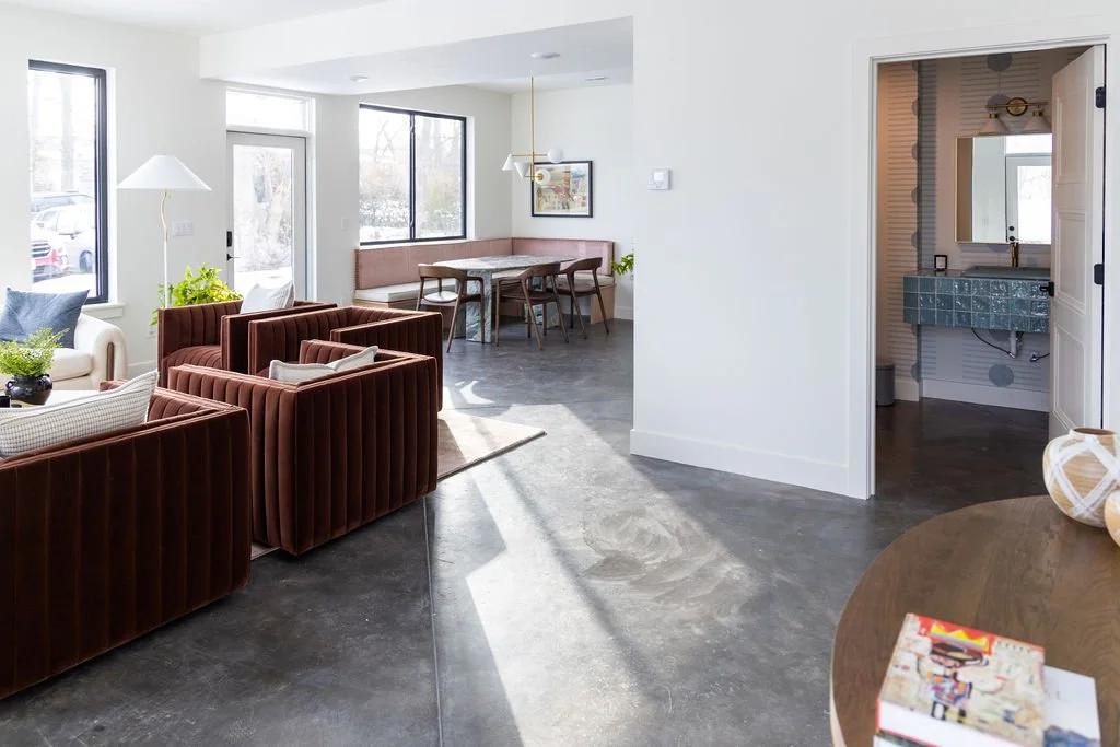 It's 1,300 square feet of what Bodine White calls "California cool meets Midwest heart." Three private bedrooms for overnight workshops. Open gathering spaces that adapt to whatever the work needs in the moment. A galley kitchen that keeps distractions at bay. Every detail chosen with intention after years of this work.